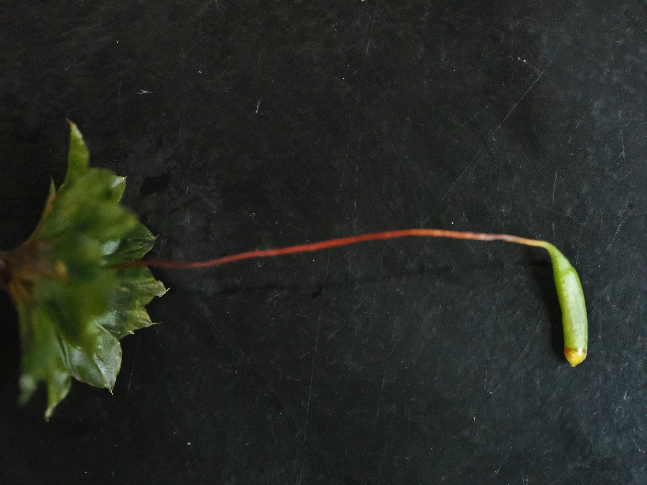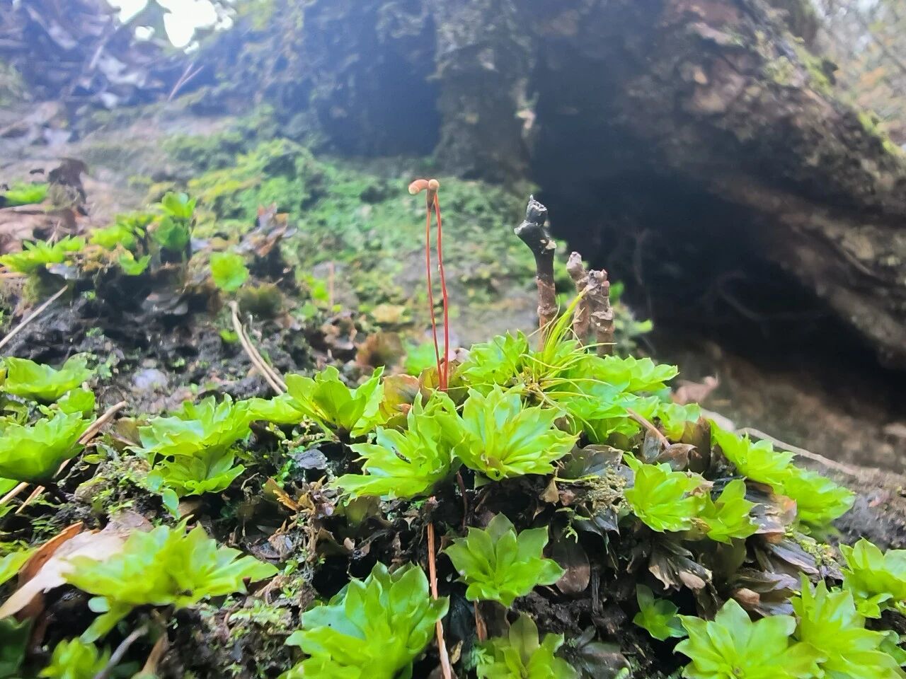 发现于南大门温泉区域。该种隶属于凤尾藓科凤尾藓属,该科植物的叶片呈扁平二列排列,展开时像孔雀的羽毛,是一类非常容易识别的苔藓植物。此次在黄山发现的Fissidens neomagofukui体型微小,生于林下树干基部,在野外调查中极易“隐身”,本种此前仅见于日本和俄罗斯,中国为首次记录。